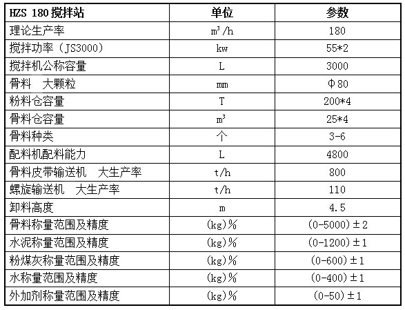 HZS180系列混凝土搅拌站,整套设备包括双卧轴搅拌机、混凝土配料机、散装水泥仓和螺旋输送机,输送带,微机控制室。采用JS系列双卧轴强制式搅拌机,属强制、有效型设备,可生产塑性、干硬性混凝土等多种混凝土,生产效率高,搅拌时间短,而且外形美观,广泛用于大、中型建筑施工、道路桥梁以及生产混凝土制品的预制厂中,是生产商品混凝土的理想设备。