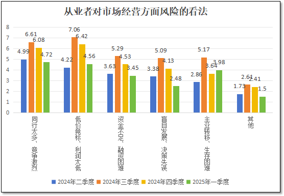 我们来具体看从业者们对市场经营方面风险细分项目的感受,并与前三个季度的情况进行对比,结果见下图所示。