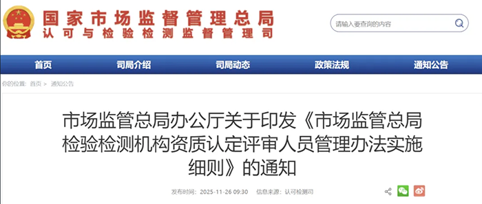 《市场监管总局检验检测机构资质认定评审人员管理办法实施细则》全文发布