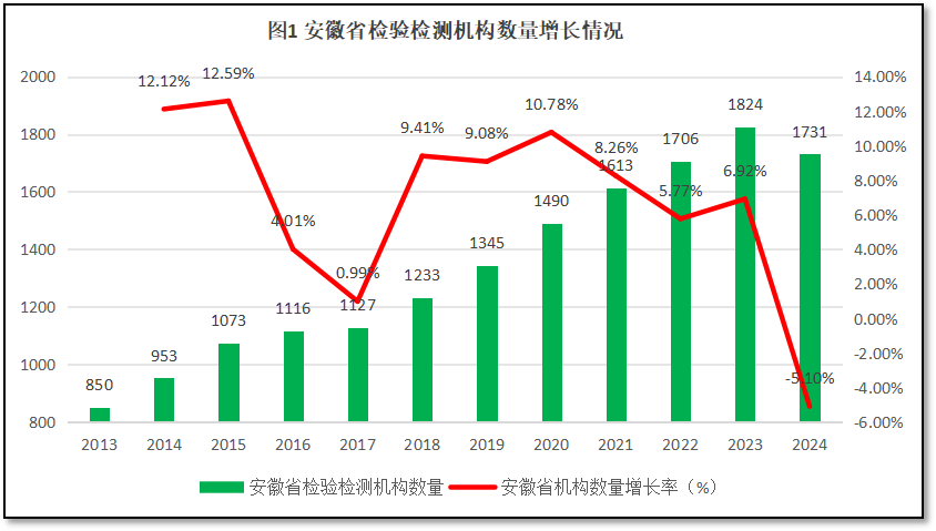 过去12年山东省检验检测机构数量的变化如图1所示。