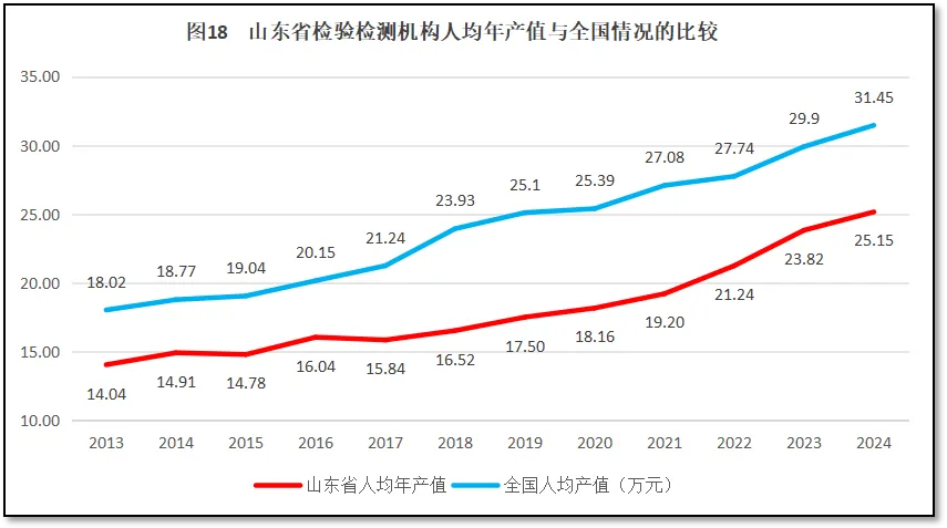 山东省检验检测机构人均年产值与全国情况的比较如图18所示。